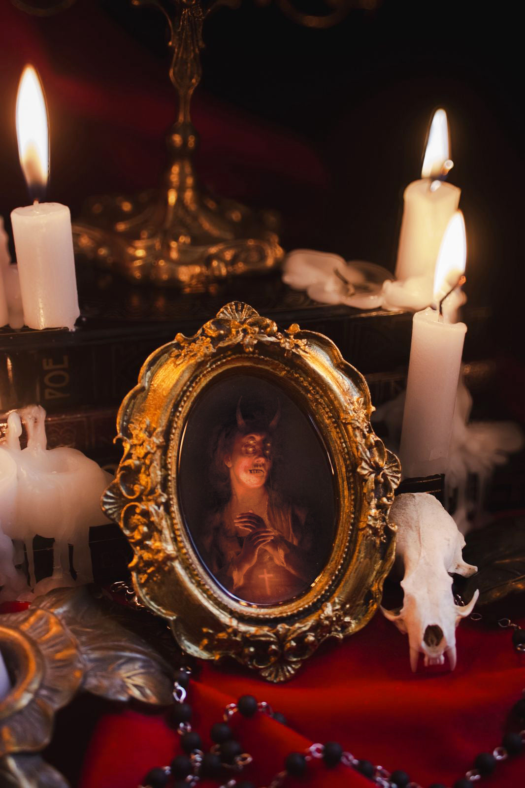 Arte impressa "LUMEN DEFORMIS" revestida de resina em moldura dourada ou preta com ornamentos dourados. Mede aproximadamente 12 x 10 cm e vêm com gancho para pendurar na parede. Numerada e assinada.